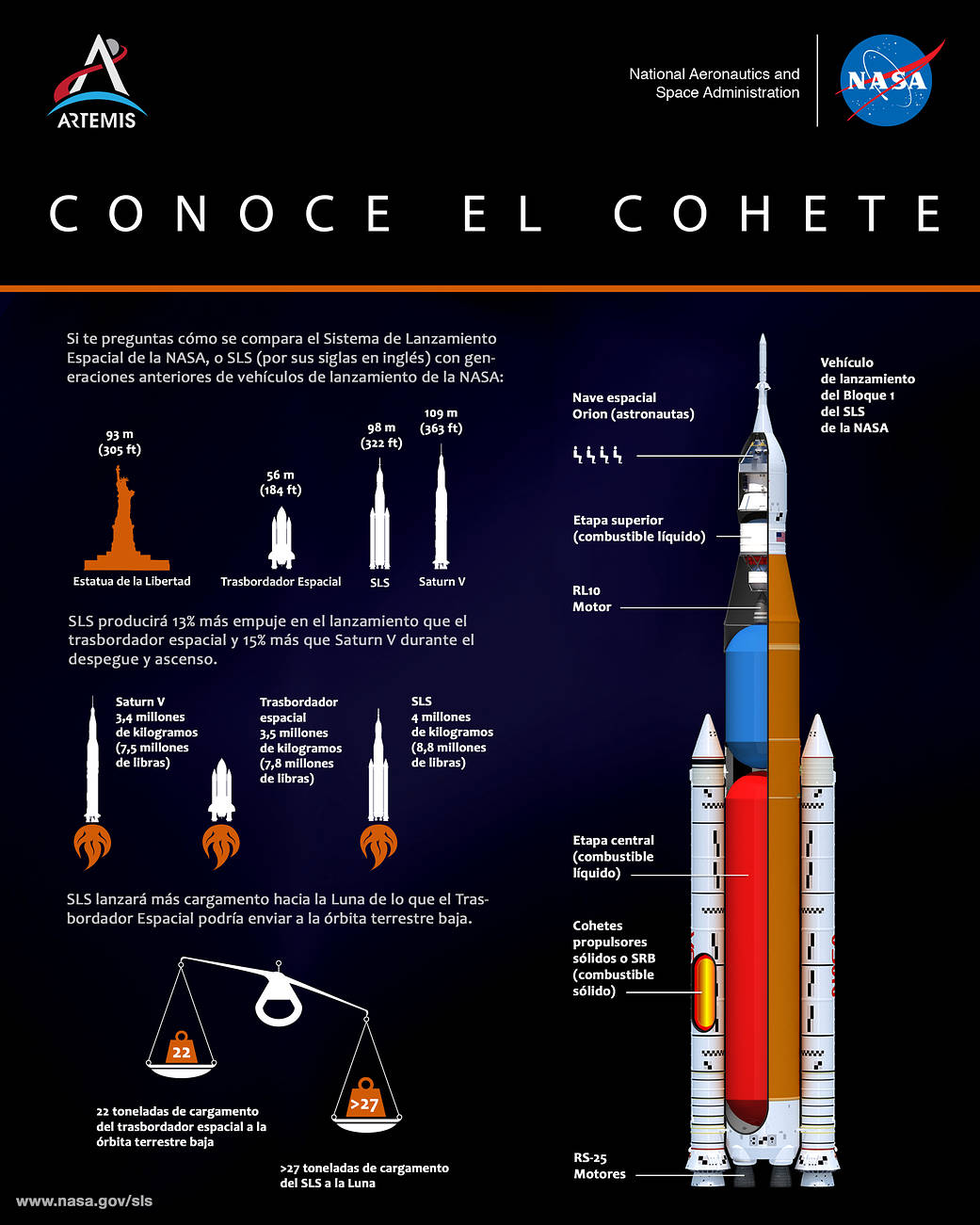 - Cohete: SLS (sistema de lanzamiento espacial)